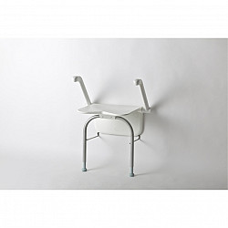 Douchezitting met ergonomische, opklapbare armsteunen met een anti-slip oppervlak en in hoogte verstelbare steunpoten voor extra stabiliteit.