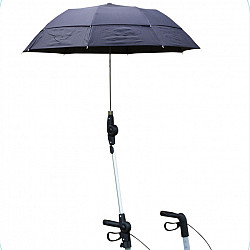 De paraplu is eenvoudig aan de rollator te monteren en er weer af te halen. Eenmaal gemonteerd kan de hoek worden afgesteld voor de beste bescherming tegen regen en zonneschijn.