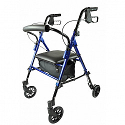 Een lichtgewicht aluminium rollator waarmee u makkelijk kunt manoeuvreren. De zitting kan op drie hoogtes ingesteld worden, afhankelijk van de lengte van de gebruiker. Remmen kunnen op slot gezet worden, zodat de gebruiker veilig kan rusten in zittende of staande positie. Eenvoudig in te klappen. Gewicht : 6,4 kg Lengte : - Breedte : 60 cm Hoogte : 78 - 94 cm Maximaal gebruikersgewicht : 113 kg Zitbreedte : nvt Zithoogte verstelbaar : 45,5 - 53 - 58 cm Handgreep hoogte : 84 - 95 cm Afstand tussen handgrepen : 45 cm Inclusief : tas Kleur metallic blauw